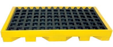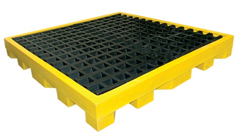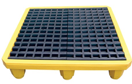 Plataforma antiderrame fabricada en polietileno de media densidad placa superior acanalada para recolectar líquidos.