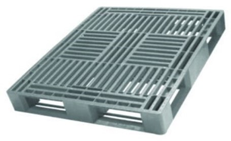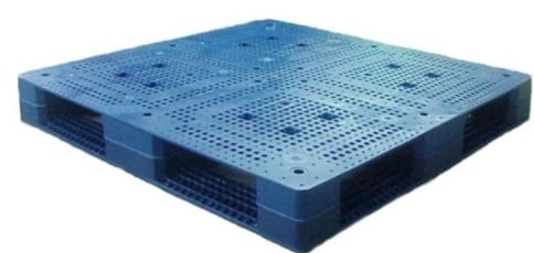 Tarima calada fabricada en POLIETILENO de alta densidad, con entrada para patín en dos de sus lados y montacargas en los cuatro lados.