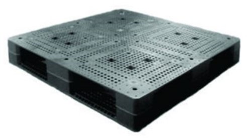Tarima calada fabricada en POLIETILENO de alta densidad, con entrada para patín y montacargas en sus cuatro lados.
