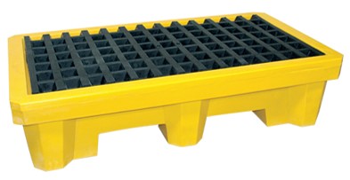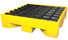 Tarima antiderrame fabricada en polietileno de media densidad placa superior acanalada para recolectar líquidos.